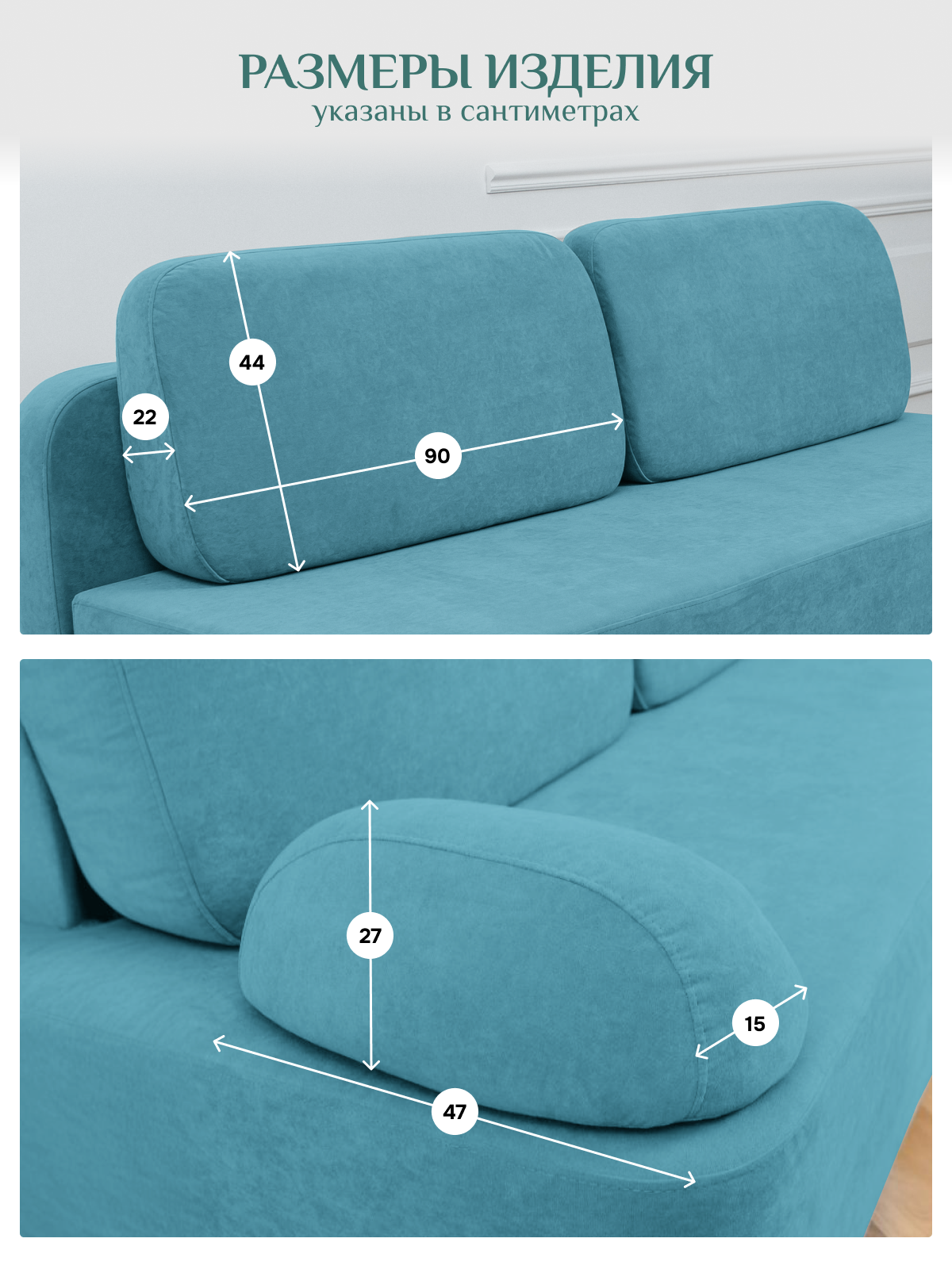 В комплекте с диваном идут четыре подушки.
