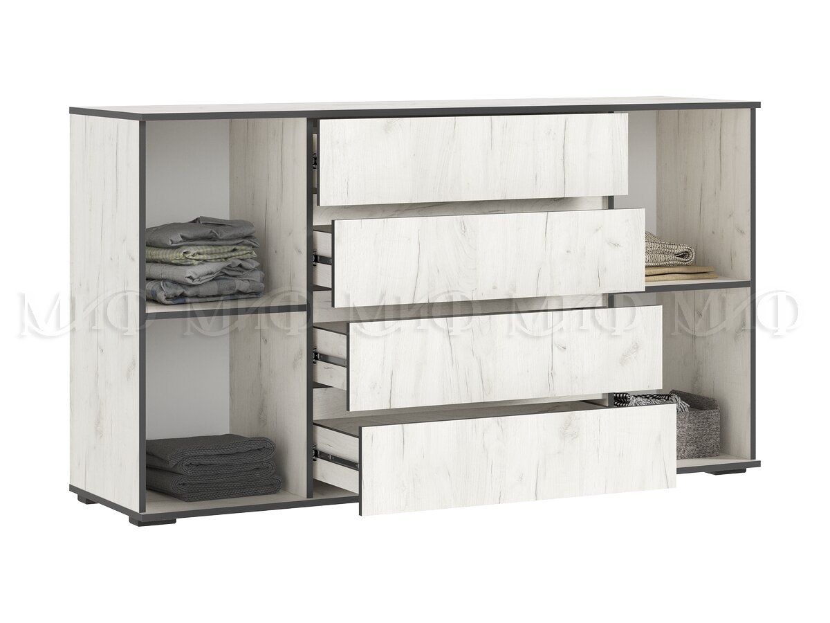 Комод 2 двери 4 ящика (1600) Норд, крафт белый (Миф)