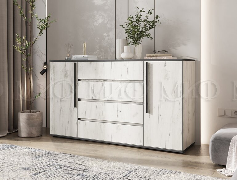 Артикул: A65085Комод 2 двери 4 ящика (1600) Норд, белый (Миф)