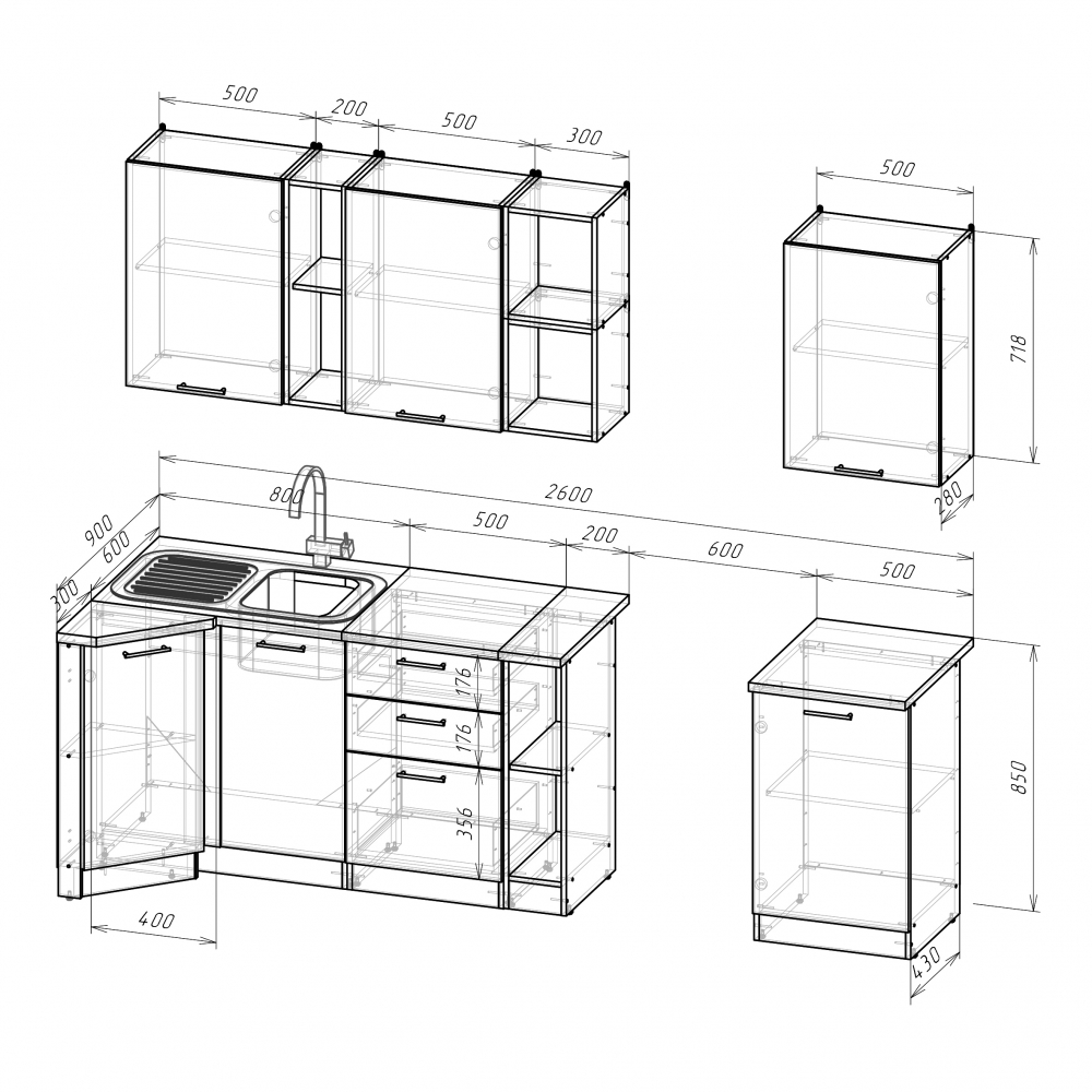 ***Мойки, смесители и посудосушители в комплекты гарнитуров не входят.