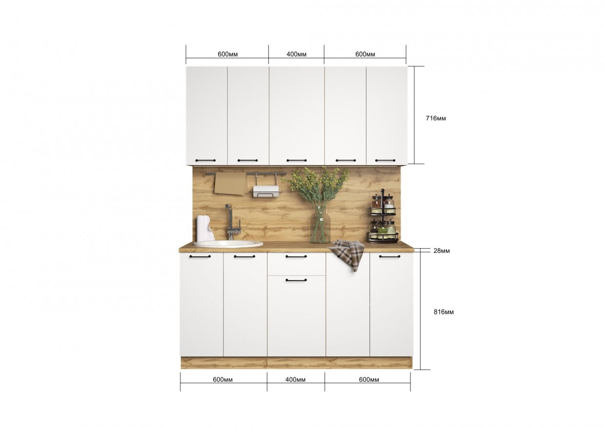 Артикул: A64480КУхонный гарнитур Валерия 1800 мм вотан/белый (Сурская)