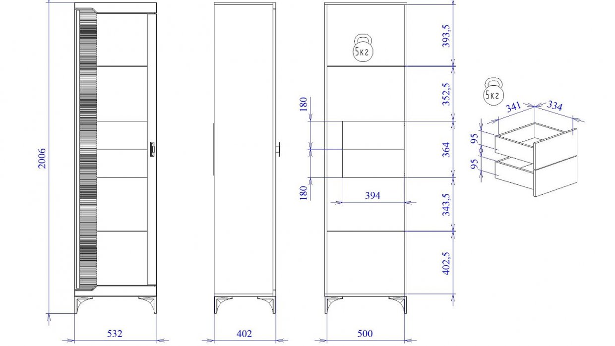 Артикул: A65220Шкаф Linnea MHR-1-2 2050х400х510 (Белый-М 11.1.2)