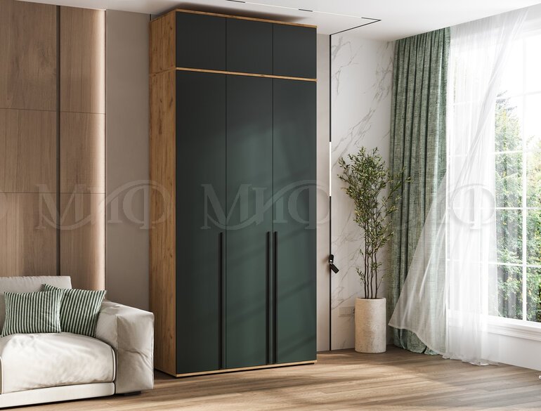 Шкаф 1200 мм 3-х ств. Норд с антресолью дуб крафт/изумруд (Миф)
