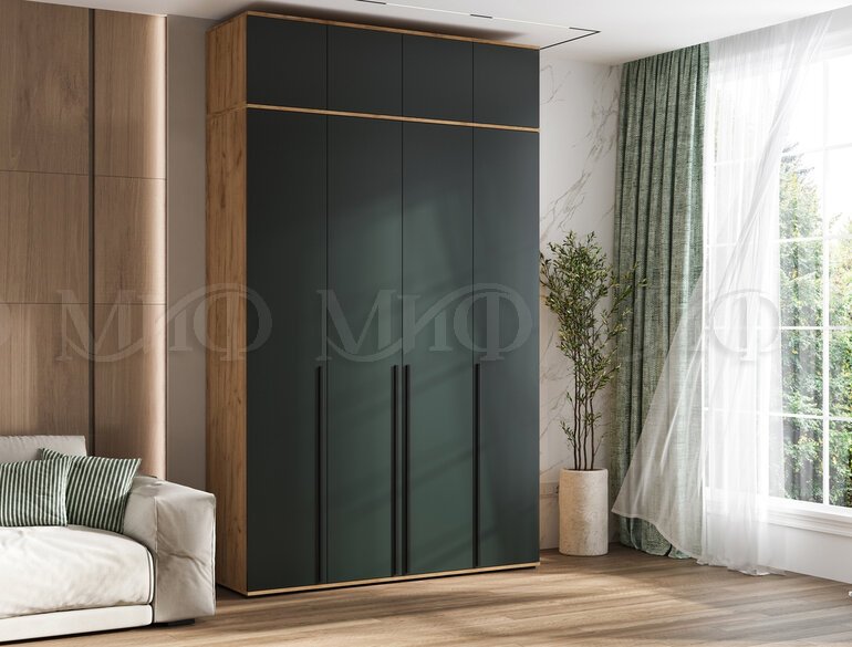 Шкаф 1600 мм 4-х створчатый Норд с антресолью,крафт/изумруд (Миф)