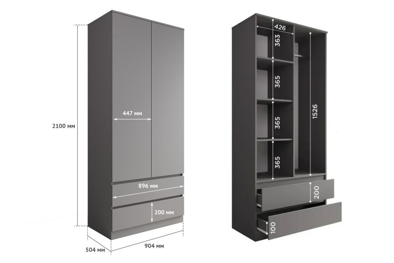 Шкаф 900 мм Мори 900.2 графит высота 2100 мм (ДСВ)