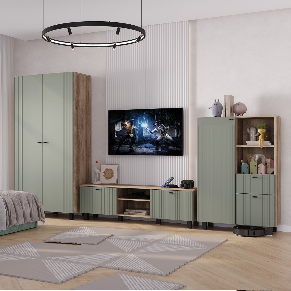 Гостиная "Олива" - это идеальное сочетание современного дизайна и функционала. Модель выглядит презентабельно и стильно. Матовые фасады из МДФ пастельного оттенка с оригинальной фрезеровкой будут отлично гармонировать как с насыщенными и нестандартными, так и с классическими решениями в интерьере.