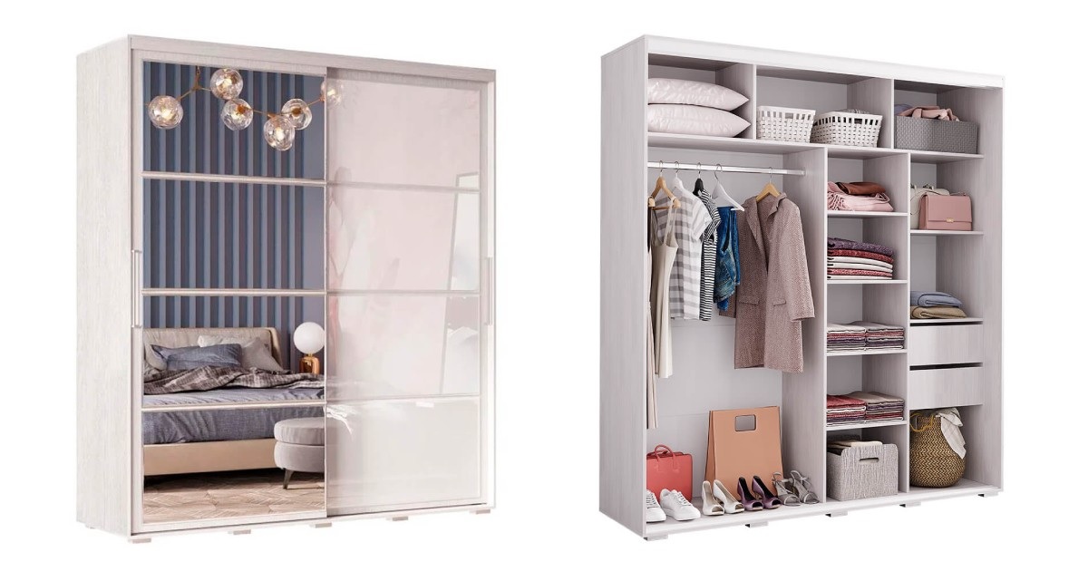 Современный, многофункциональный шкаф-купе Крафт-6 содержит множество полок,штангу для одежды и два выкатных ящика.