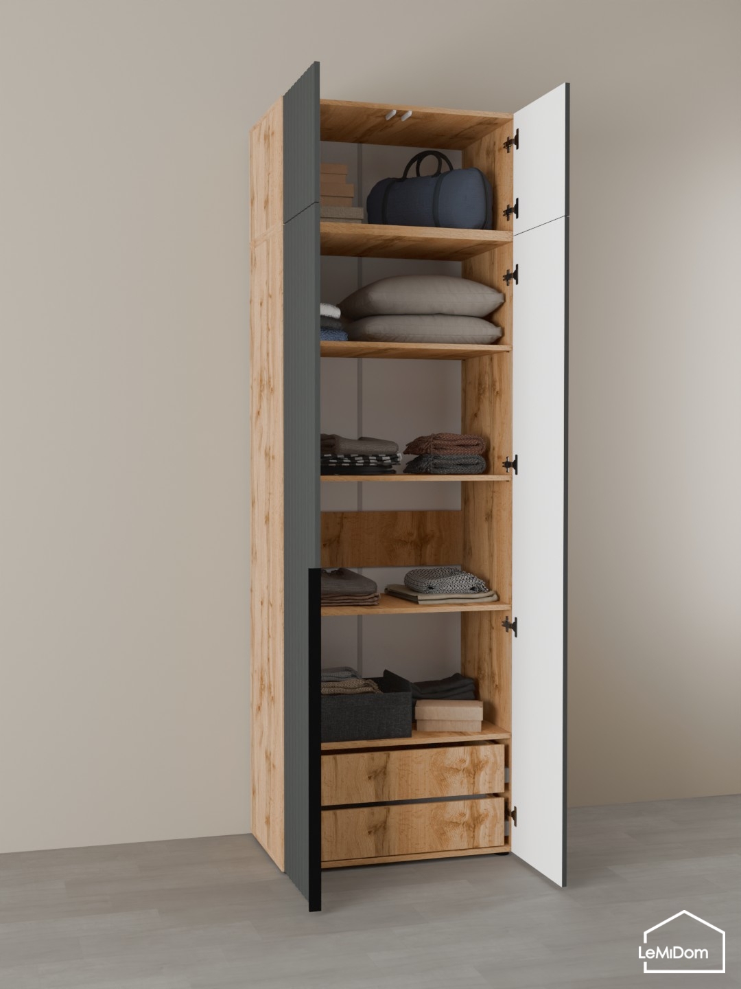 • У шкафа торцевая пластиковая ручка (100см), а у антресоли дверь без ручки (система открывания PUSH to OPEN).
