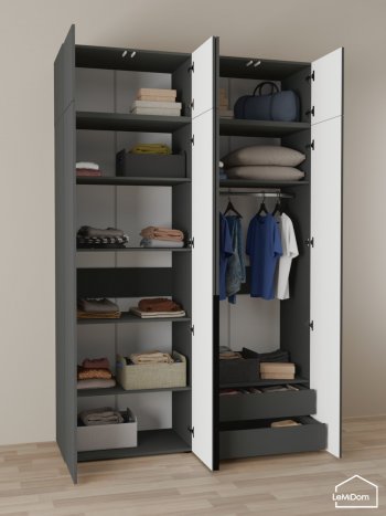 Артикул: A64255Шкаф с антресолью 1600 мм Linnea MHR-4A-2 2450х1600х510 (Графит-М 11.1.25) Серые