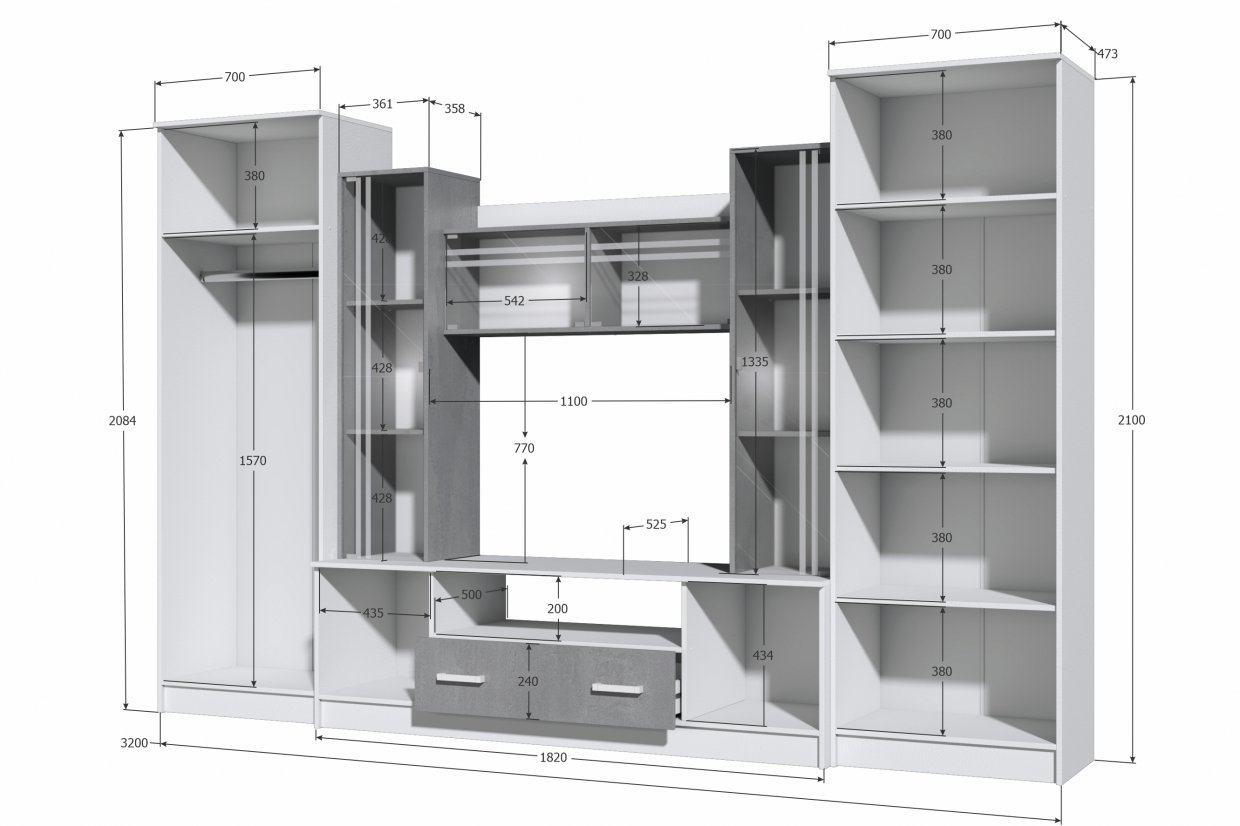Артикул: A64367Стенка Атлантида-5 дуб крафт серый/бетон темный (Миф)