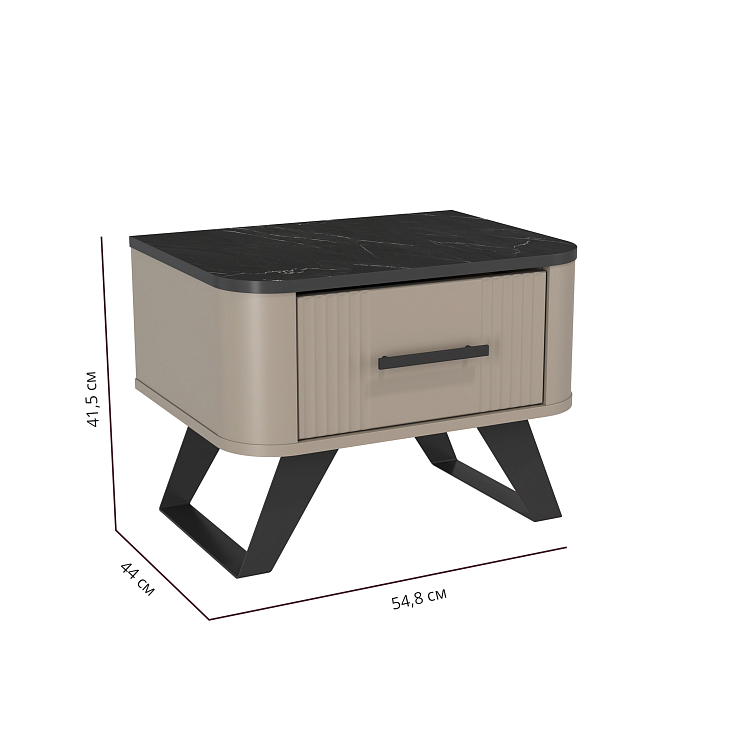 Тумба прикроватная 76.07 Фиделия (серый камень / мрамор черный / ДВПО: серый камень / ПВХ серый камень / профиль: Masa Decor серый камень) исполняется в классическом стиле и спокойных цветах. Модель сочетает в себе простоту и функциональность, но при этом не выглядит громоздко. Она гармонично впишется в пространство, не утяжеляя его.