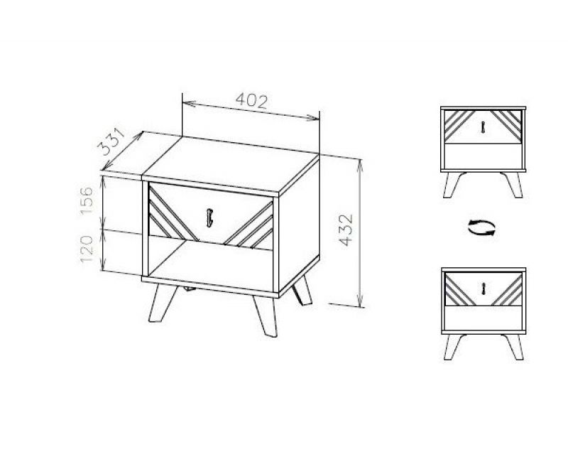 Тумба прикроватная с выкатным ящиком и открытой нишей.