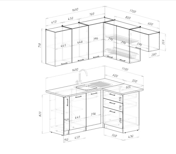***Мойки,смесители и посудосушители в комплекты гарнитуров не входят.