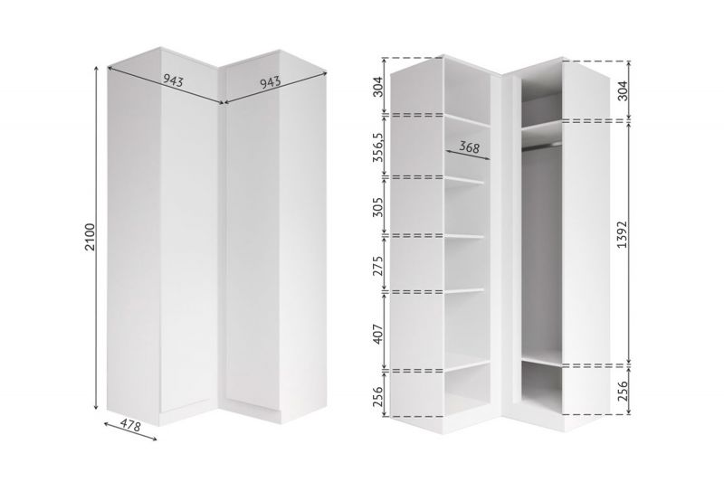 Артикул: A43321Шкаф-купе угловой Елена 1266*1266 (ЛДСП)